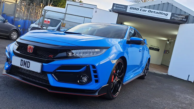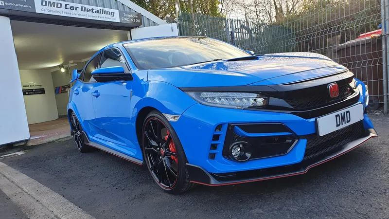 Honda Civic Type R which underwent my New Car Ceramic Coating Detail. Customer opted for the Carbon Collective Ceramic Coating system to protect the Boost Blue paintwork.